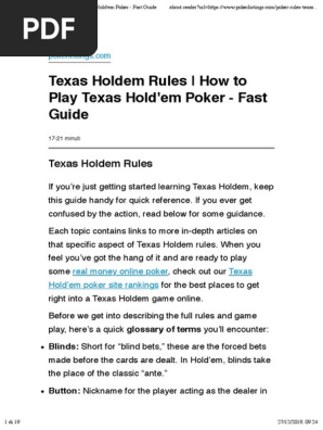 Texas Holdem Rules How To Play Texas Hold Em Poker Fast Guide Pdf Pdf Betting In Poker Texas Hold Em