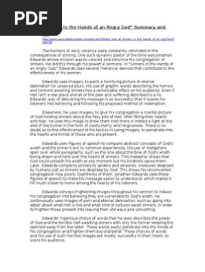 Sinners In The Hands Of An Angry God Summary And Analysis Pdf Sin Anger